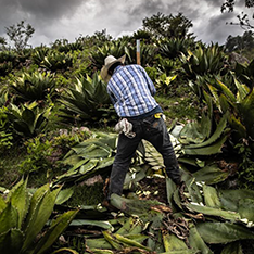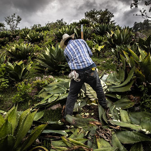 Una vez que la planta ha madurado y tiene el nivel adecuado de azucares se procede a arrancar del suelo, a cortar las hojas aras del tallo, de una forma artesanal conocida como jima.