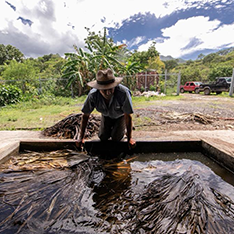 El tallo cocido se muele mediante un proceso llamado molienda para extraer todos los jugos del agave que son los que darán paso a la fermentación.