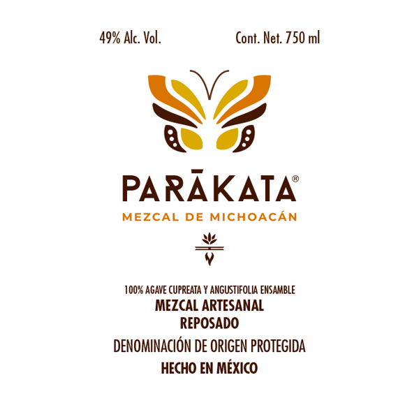 Mezcal Parakata es reposado en barricas de roble blanco americano lo que le genera notas amaderadas y consolida el sabor del maguey, es para los amantes del mezcal a casi 50 grados de alcoholes propios del maguey, sin químicos ni conservadores artificiales, es apto para compartir y cerrar un trato o acuerdo de negocios. Parákata Mezcal de Michoacán con Denominación de Origen es elaborado por maestros mezcaleros del estado de Michoacán, México.