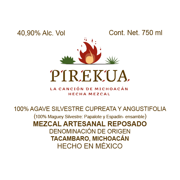 Con su nota distintiva suave, Mezcal Pirekua es reposado en barricas de roble blanco americano lo que le genera su dulzura musical. Es perfecto para cualquier acontecimiento festivo, siendo motor del vínculo social a través de la expresión del sentir y el pensar, tal cual como lo hacen los cantos tradicionales purépechas llamados Pirekuas. Mezcal de Tierra Caliente, elaborado por Maestros Mezcaleros del Cerro prieto y La sierrita, Madero, Michoacán, México.